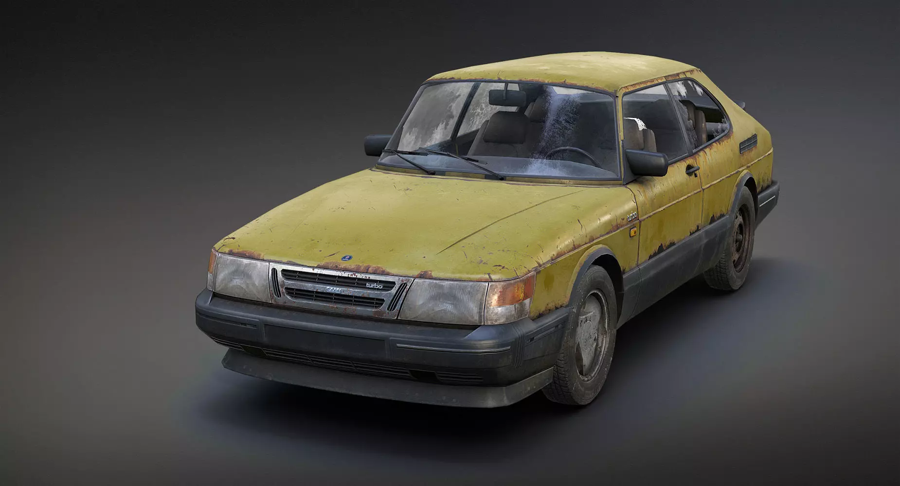 Game low-poly 3d-model of rusty car Saab 900 Turbo 1990.