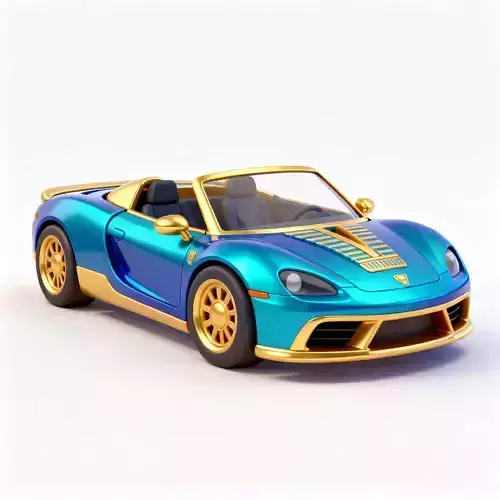 Files Included: FBX, GLB, OBJ, STL, ZIP (Textures).Quick Tip: The Golden Rims and Hood Stripes are separate material IDs. You can easily apply an Anisotropic shader to the gold parts to create a realistic metallic gleam that changes as the car drifts around corners or speeds through desert canyons.