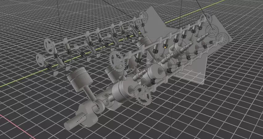 The model has material settings that define how surfaces look (color, shine, transparency, etc.).