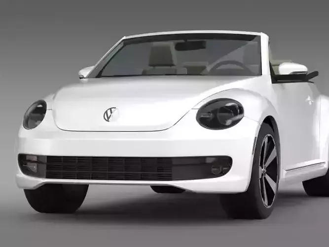 Let me represent you high poly 3d model of VW Beetle Turbo Cabrio (The Volkswagen Beetle is a compact car manufactured and marketed by Volkswagen introduced in 2011 for the 2012 model year, as the successor to the New Beetle. It features a lower profile while retaining an overall shape recalling the original Volkswagen Beetle.) with high detail.