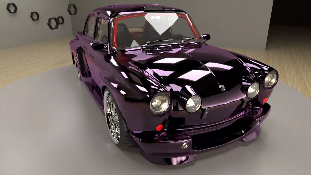 This model was designed in Sketchup and converted to 3ds and obj... using the buit-in sketchup converter. Rendering program is Maxwell free plug-in. Materials added to a single folder. Textures in model from Sketchup library Diferent parts of the model (steering wheel, lights, tires and wheels, wing mirrors, seats, etc.) are compiled in components and grouped in one single model.