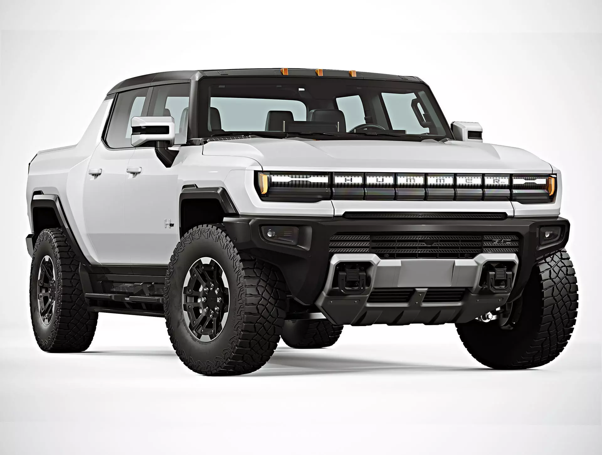 Photorealistic, high-quality and accurate 3D model of 2022 GMC Hummer EV with high detailed interior, openable hood, trunk and detachable roof.