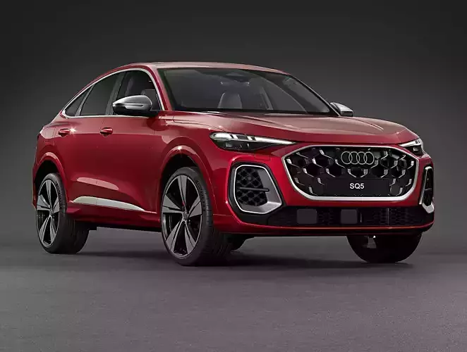 Photorealistic, high-quality and accurate 3D model of 2025 Audi SQ5 Sportback with high detailed interior, openable hood and trunk.