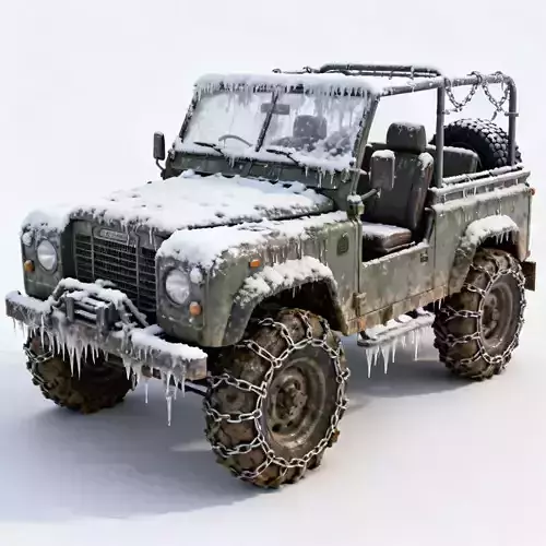 Key FeaturesExtreme Terrain Gear: Equipped with detailed metal snow chains on all four tires, adding a unique silhouette and narrative of navigating deep snow.