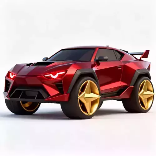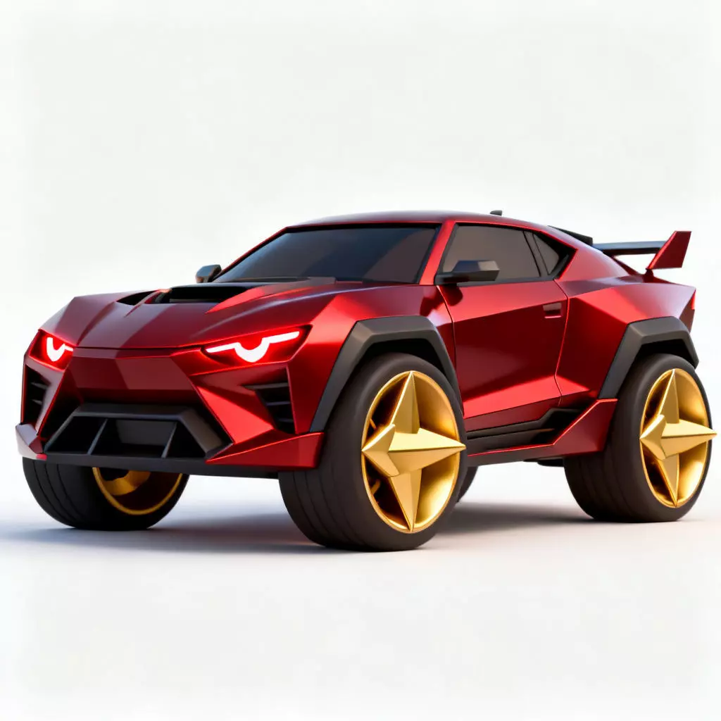 Crimson Metallic Finish The body is coated in a deep, metallic crimson red. This vibrant color highlights the sharp, low-poly style facets of the car, giving it a premium yet playful look that stands out against any game environment.