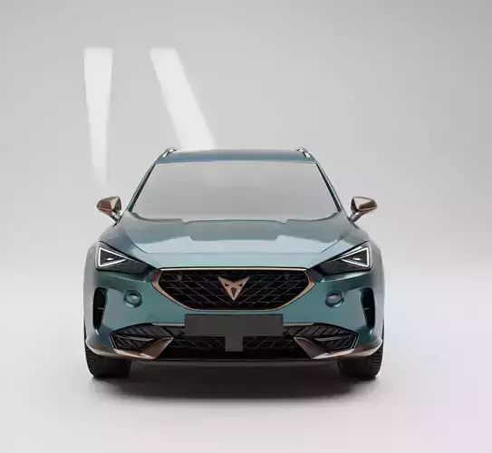 A high-quality 3D model of a contemporary crossover SUV featuring a distinctive and sporty design. The vehicle is rendered in a unique metallic teal/blue-green color, beautifully contrasted with copper-colored accents on the grille, side mirrors, and wheels, suggesting a modern or hybrid powertrain. The model features sharp body lines, a sculpted hood, and stylish two-tone alloy wheels. This asset is perfect for high-end automotive visualizations, digital showrooms, advertising content, and architectural visualizations where a modern and luxurious vehicle is required.