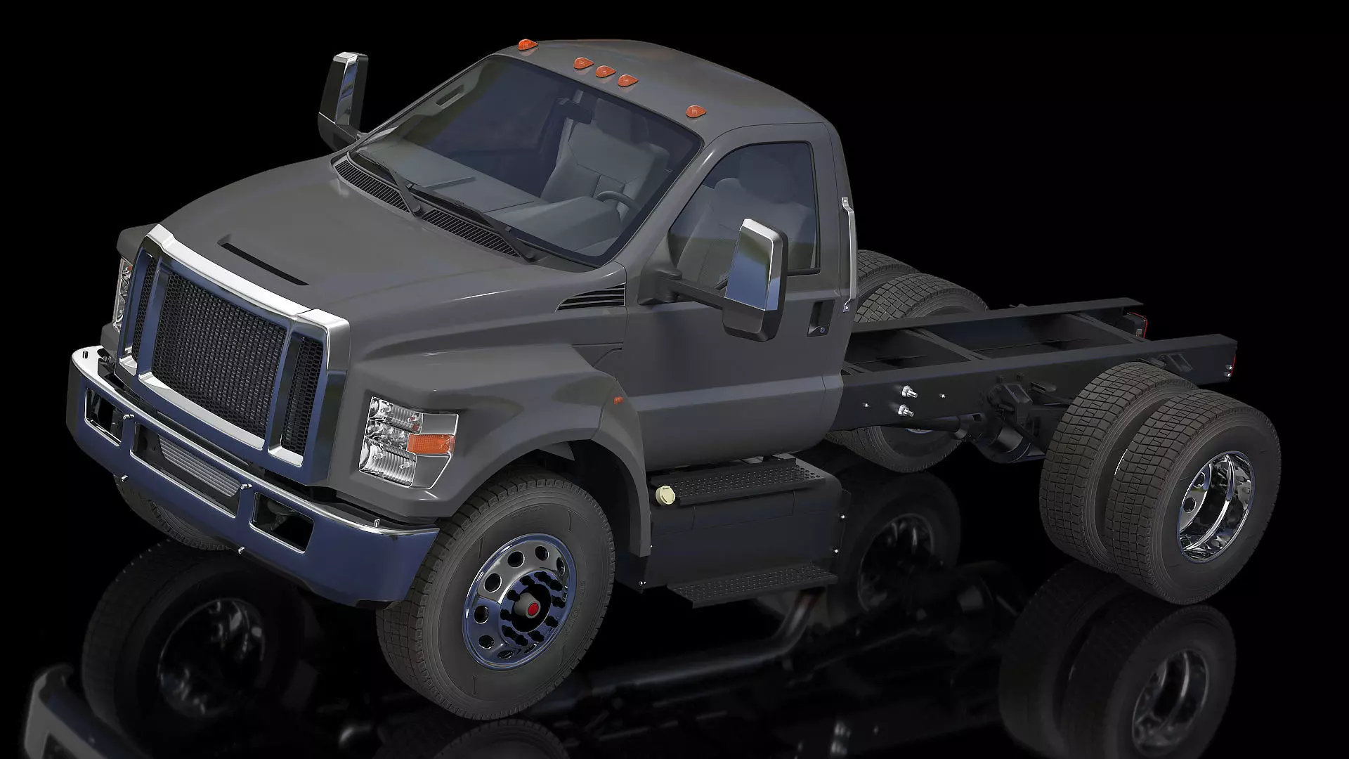 Crew Cab Chassis Truck Generic Simple Interior, chassis rails and a cab.Instead of supplying the customer with a factory pre-assembled cargo container, customer is given the vehicle with just chassis rails and a cab. Large and powerful universal purpose off-road freight vehicle.For off-road freight vehicle, transport construction equipment and heavy road freight mechanism projects design.