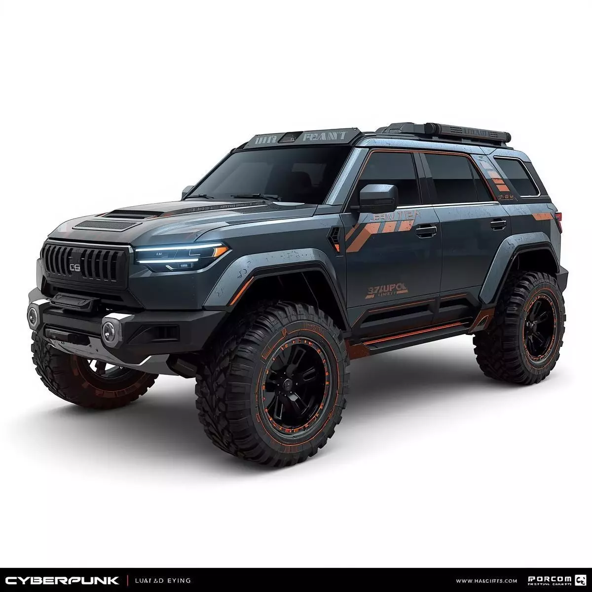 Tagssuv car, 4x4, 3D model, tactical vehicle, performance SUV, offroad, PBR materials, futuristic car, urban racer, heavy duty, armored car, game ready, automotive asset, orange accents, realistic vehicle
