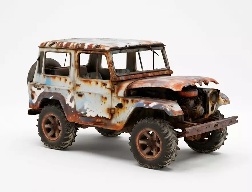 Derelict Rusted Jeep 3D Model – Post-Apocalyptic Wreck