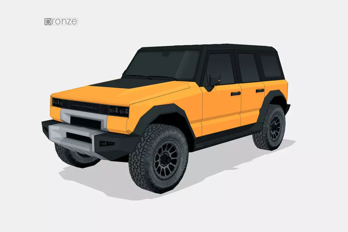 The carThe model is a free interpretation of what an off-road vehicle can be, with straight and timeless lines, without any design pretensions.