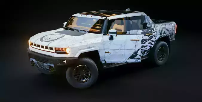 The Ghost Marble edition brings a sharp, modern white/black marble camouflage look to the HUMMER EV 2022 platform. This variant is ideal for cinematic scenes, tactical environments, automotive showcases, and design presentations.