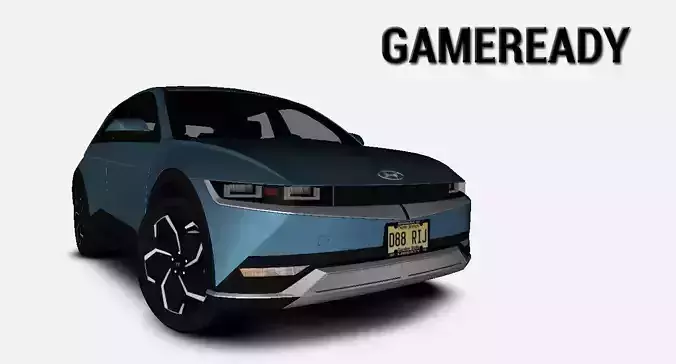 Low-poly Gameready model of 2023 Hyundai Ioniq 5. Model offers base trim for US market, named SE. This trim offers R19 alloy wheels with factory installed Michelin Primacy 4 tires, headlights with classic reflectors instead of lenses, rear-only parktronics, front turn lights mounted in bumper & black plastic body trims. Model offers lot of interesting details and features, such as: detachable license plates with detailed mounts, detachable both emblems with detailed mounts, detachable wheels center hubcaps with low-poly hubs behind, windshield VIN, mirror label and some other features aswell.