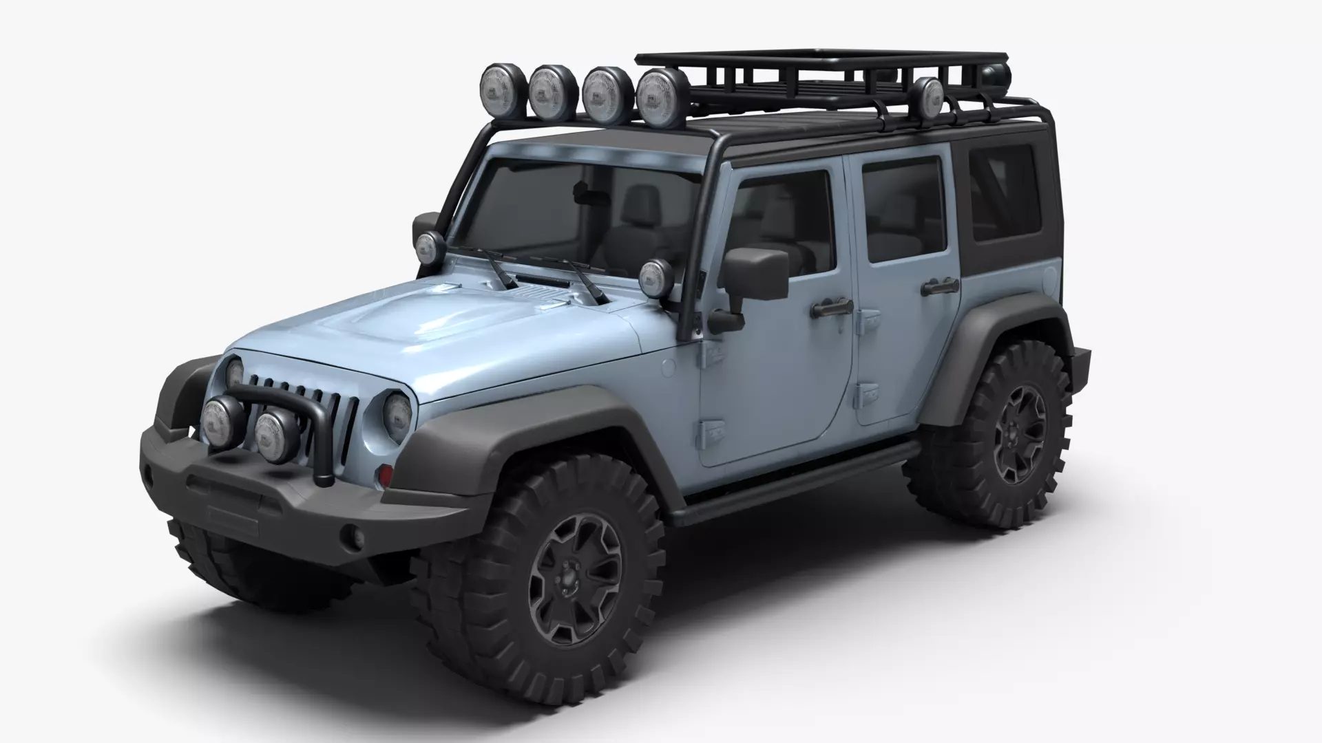A realistic Jeep Wrangler off-road vehicle.Skeleton rigging, no animation.Created using blender 4.5.1 skeletal mesh, 8 4K and 7 2K textures.10 instantiated materials, 2 master materials.Car paint mask texture (custom paint color).Number of Unique Meshes:42,429