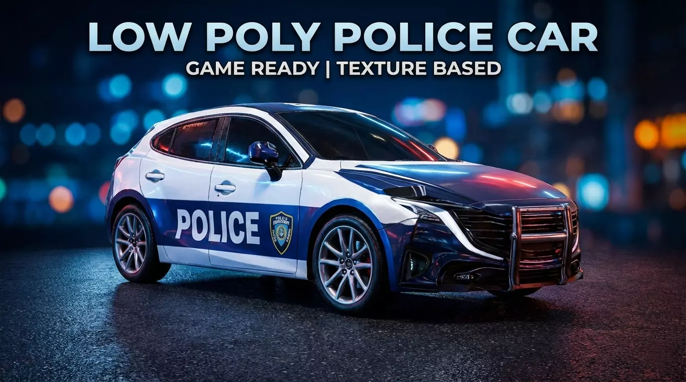 Texture-Based Detail: The headlights, grille, door handles, and police decals are baked into the texture for maximum render speed.