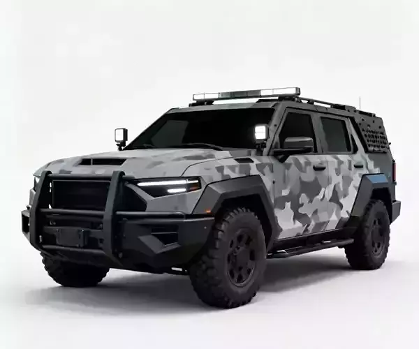 Files Included: FBX, GLB, OBJ, STL, ZIP (Textures). Quick Tip: The Camouflage Texture is likely a tileable UV map. You can swap the texture for a solid matte black or olive drab color to instantly repurpose this asset as an undercover FBI truck or a military command vehicle.