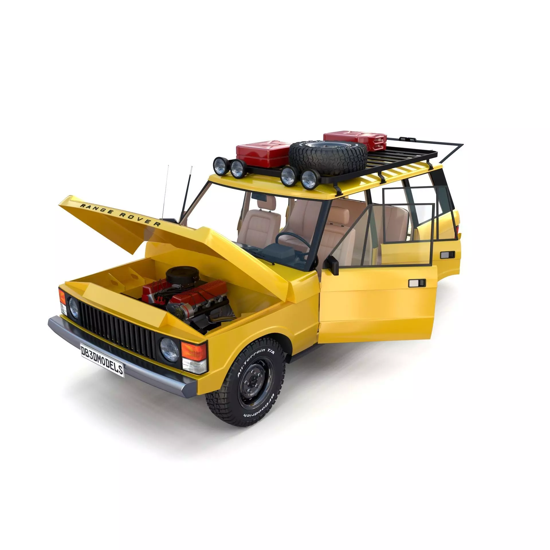 Land Rover Range Rover 3d model built in Blender, rendered with Cycles, with a detailed interior, and drivertrain consisting of detailed engine, transmission, axles, exhaust, brakes modeled, as per seen on attached images.