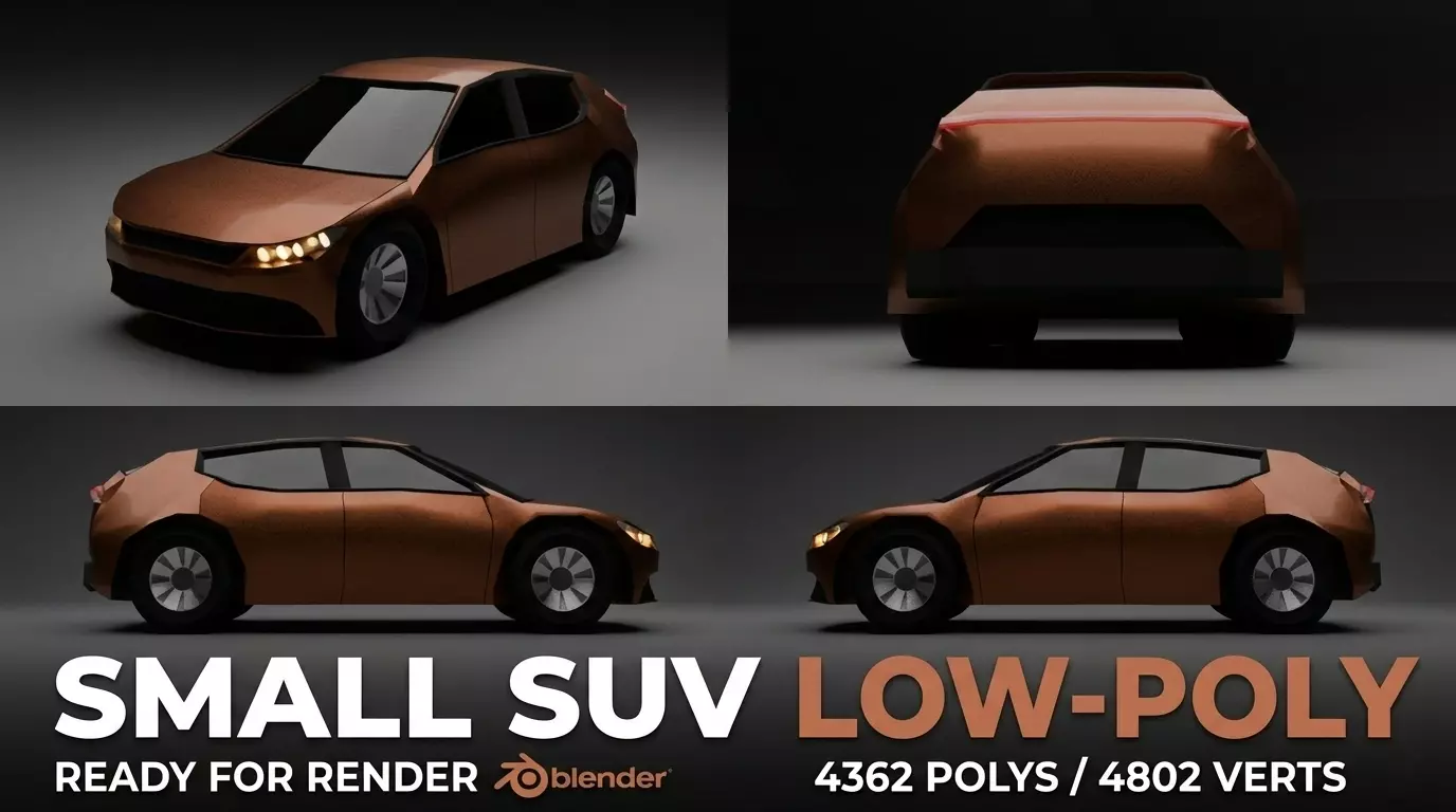 Please note that this model is a low-poly SUV designed for performance and efficiency without sacrificing a distinct, modern aesthetic. Crafted carefully within Blender, this 3D asset strikes a deliberate balance between minimalist geometry and a rugged, contemporary silhouette. With a total count of 4,362 polygons and 4,802 vertices, it is exceptionally well-optimized for real-time applications such as mobile games, VR/AR environments, or background architectural visualizations where maintaining a high frame rate is crucial.