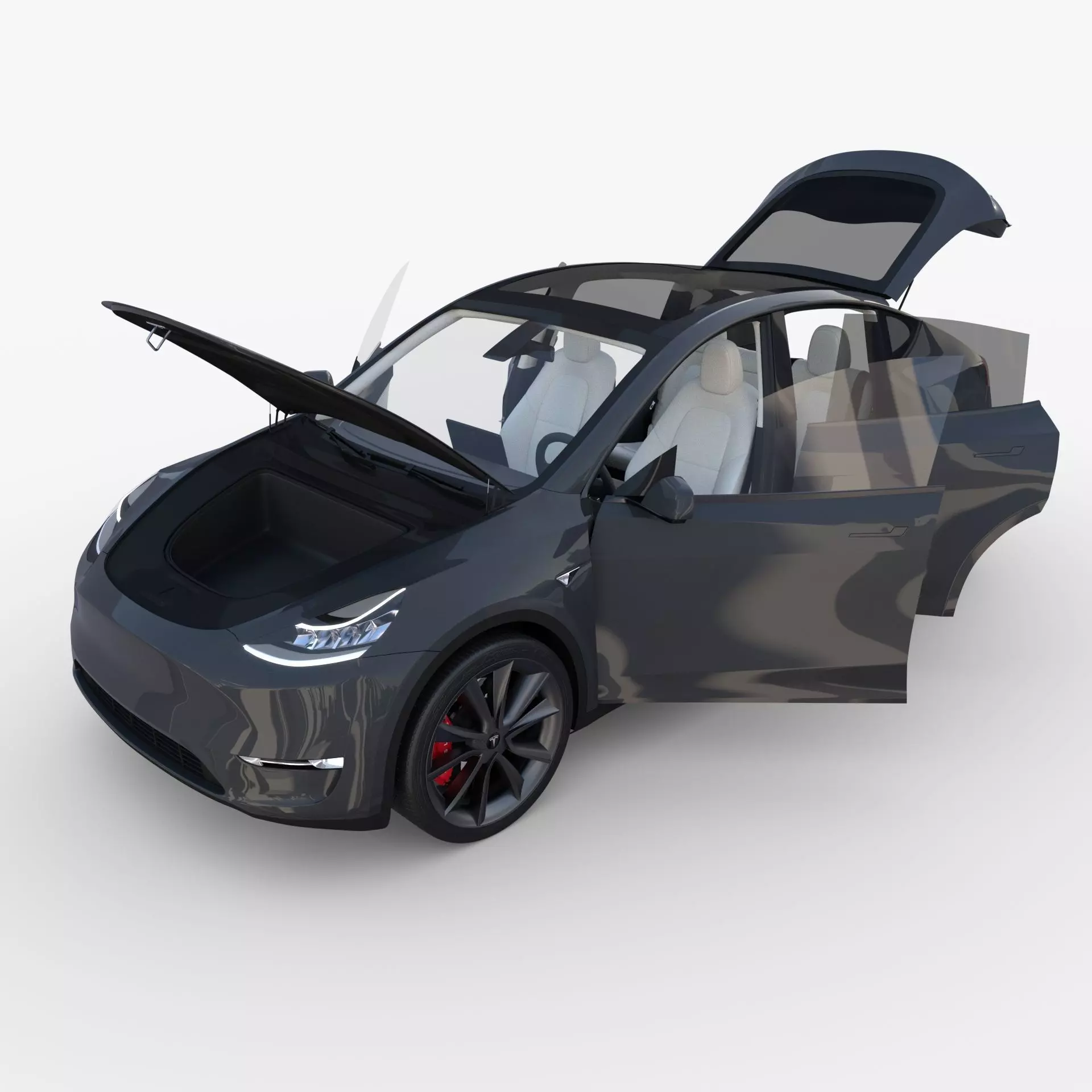 Tesla Model Y with a detailed interior 3d model rendered with Cycles in Blender, as per seen on attached images.