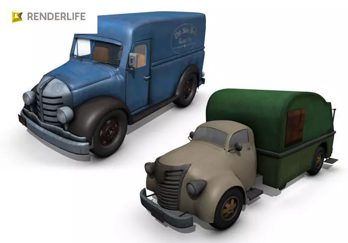 This is a pack of two background quality 3D assets depicting 1930s era trucks. They are not replicas of any particular truck, rather, they are done in the style of the 1930s. One is a newspaper delivery truck, though it may be repurposed. The other is a garbage truck. The chassis and wheels on both are rigged. Use them to fill in the background of your city scenes!