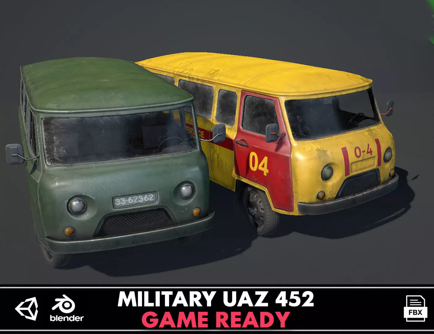 UAZ 452 Old Military Low-poly 3D model