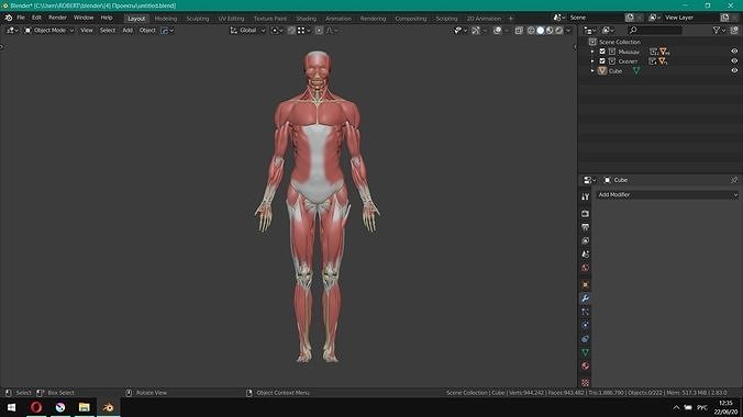 The model has material settings that define how surfaces look (color, shine, transparency, etc.).
