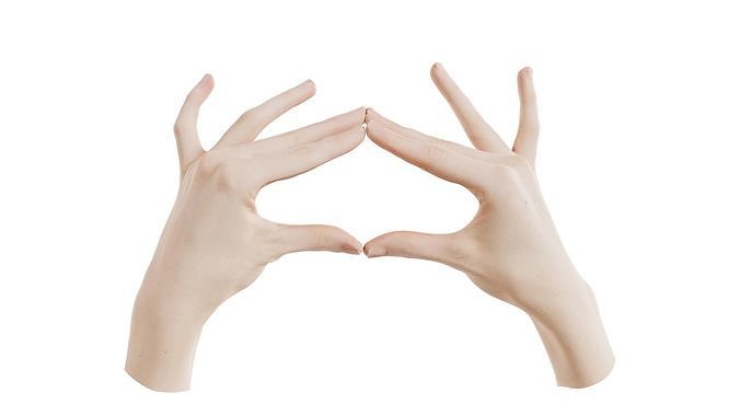 3D scanned model featuring hands making a heart shape with their fingers. This model, duo hands 012, has been created using photogrammetry from a real world object.The raw scan data has been cleaned, retopologized and UV-unwrapped using Zbrush. The result is a low poly mesh with baked maps. The .obj and .mtl are configured so that maps will load automatically in the shader (tested in Blender). In addition, a Blender scene is provided with the model and shader already set up for rendering and export. Detailed information below: