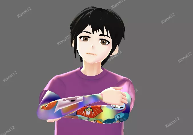 VisemesEye trackingtexture for body.Emotes.Physics bones for her hair.Tested on VRChat PC + Quest 2 Original Character: YesRig: HumanoidFacial Animations: As Shapekeys & Prebuilt inside Unity packagesSex: MaleRig: Humanoid Package Features:FBX, VRM, Blender Files, Textures, VRChat-Ready Unity Package, Game-Ready Unity Package. ** All the body movements and hand gestures are added**