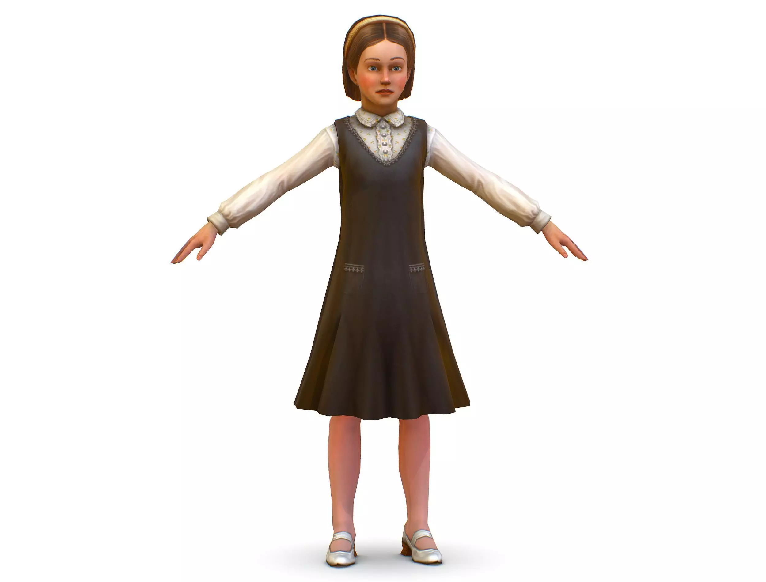 Young Girl Kid in a brown evening dress Low-poly 3D model