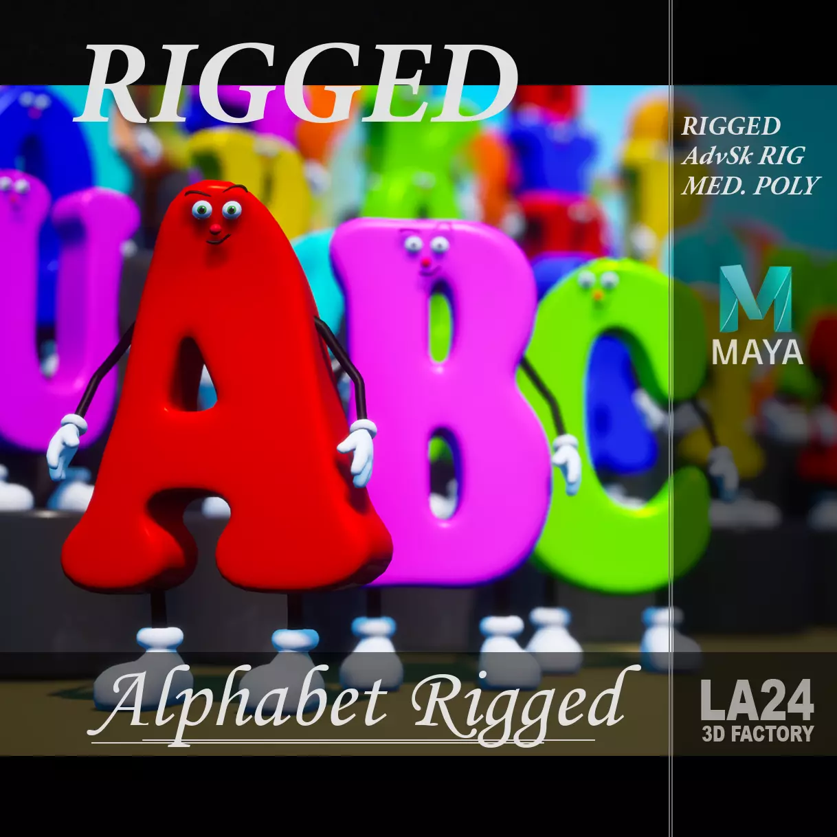 These are the full alphabet characters rigged.All of them work with the same animations, because they have the same rig.In the package is included a few animations as test, walk, jump and idle.