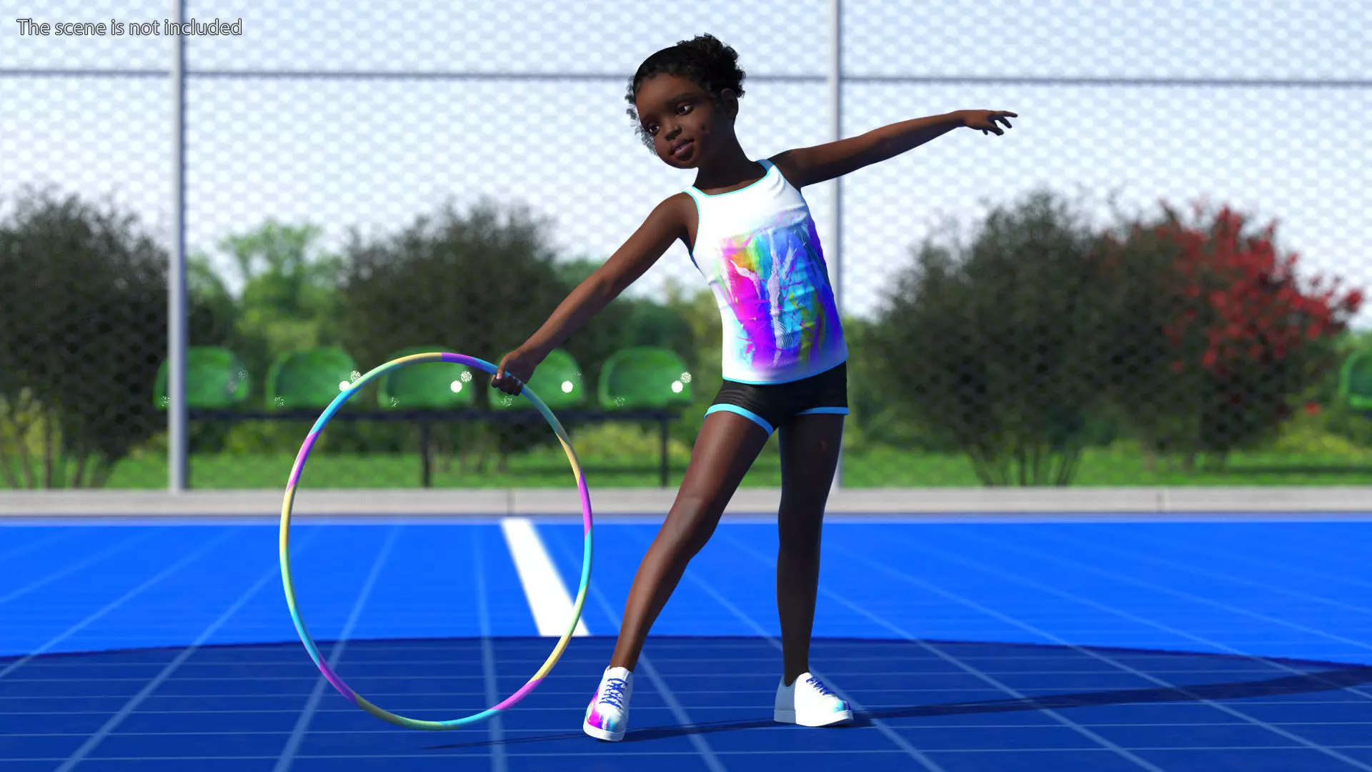 Black Child Girl With Hoop Rigged is a three-dimensional model of a cute Afro American girl (kid or child) in a sporting style wear (dress or garment).