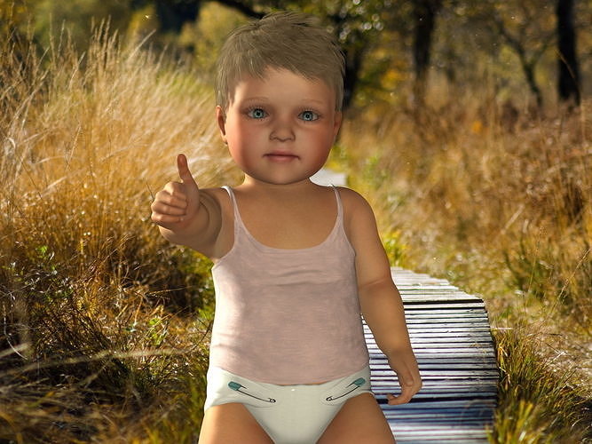 Mesh:Body (Includes nude body mesh), Eyes, Eyes Cornea, Teeth Upper/Lower, Tongue, Hair, Tank top, Diaper