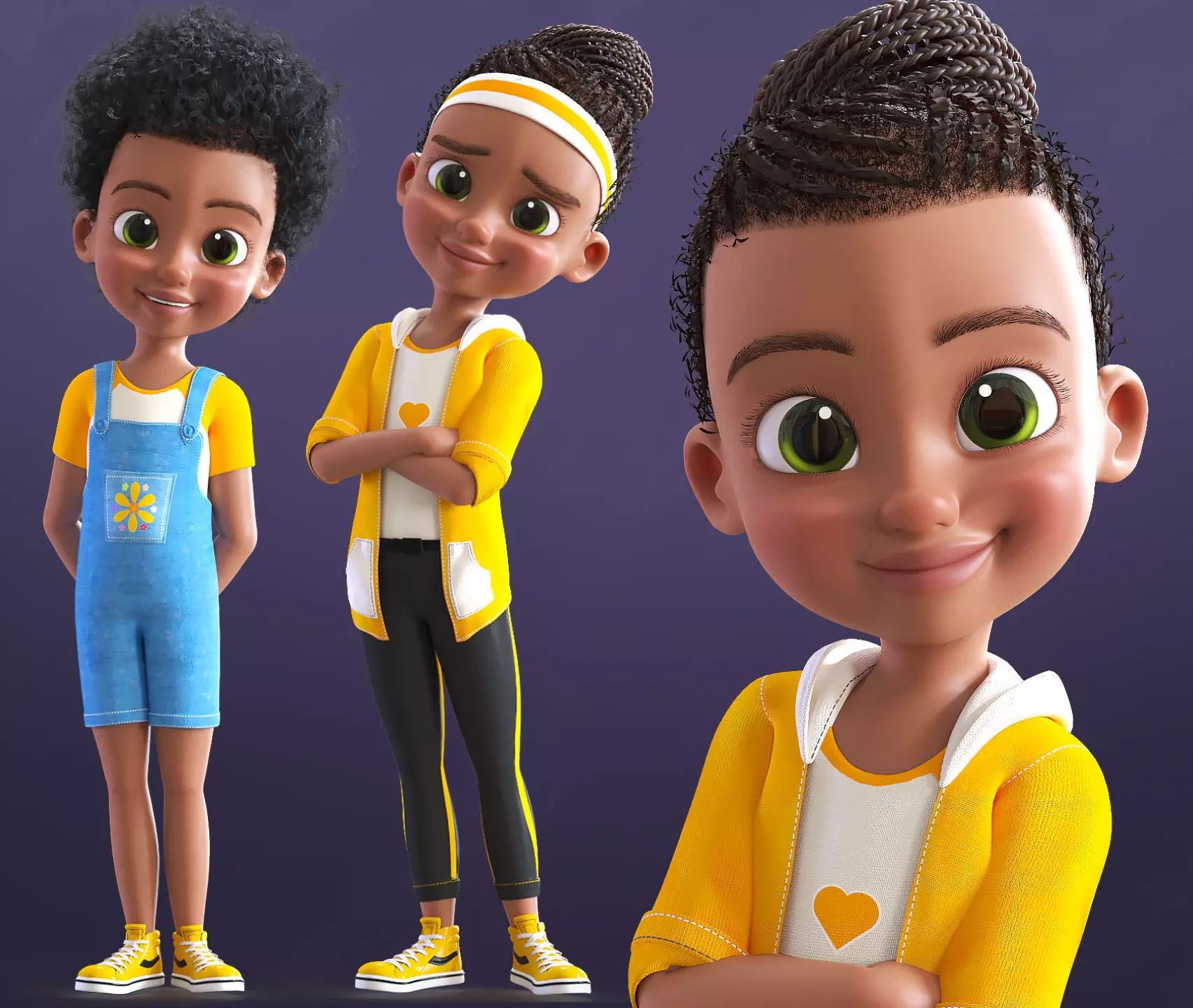 Cartoon Afro Girl - Toon Rigged Child