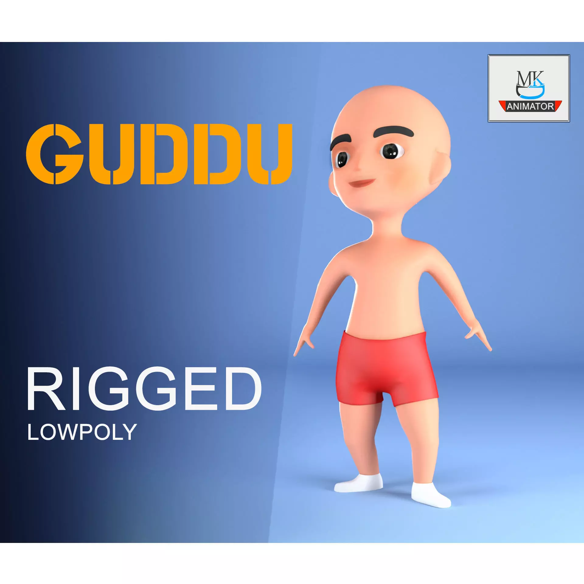 Cartoon boy Guddu Rigged Character Low-poly 3D model
