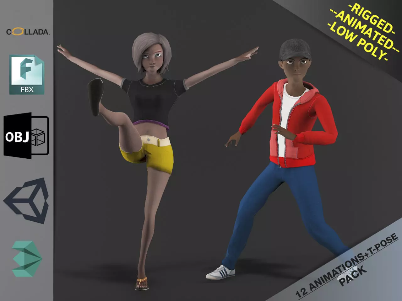 Each model includes 12 animations + T-Pose