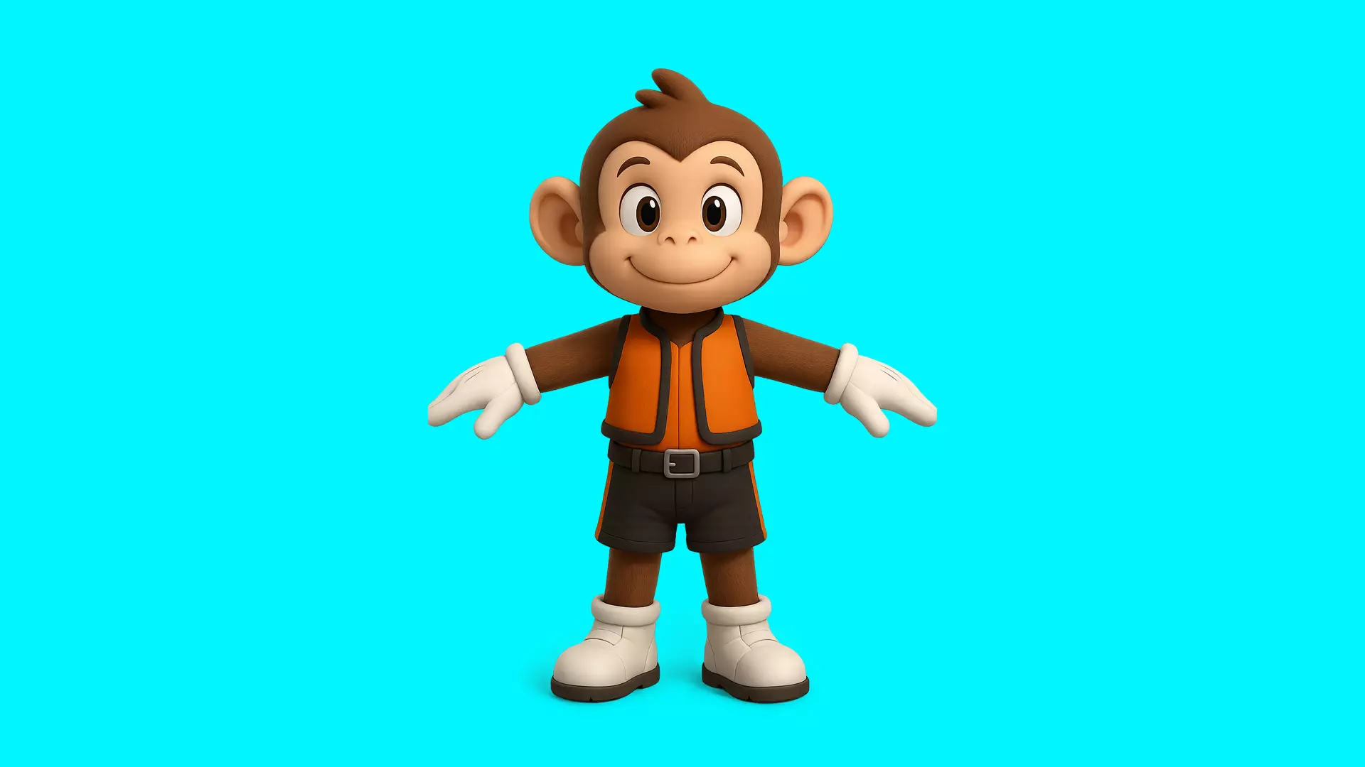 Enhance your project with this 3D low-poly and high-poly adventure Cartoon Monkey model, designed in a cute cartoon style.