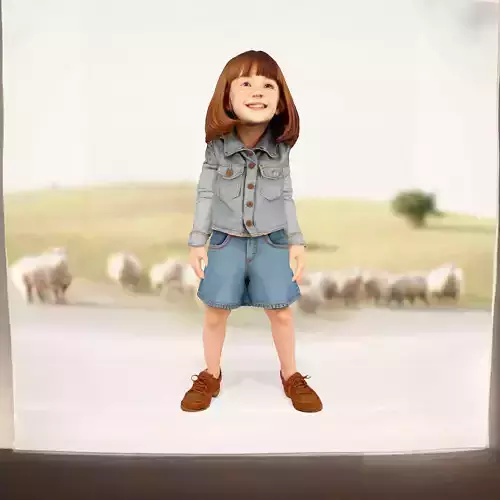 This 3D model features a charming child character adorned in a stylish denim outfit, complete with a jacket, skirt, and brown shoes. The model is ideal for use in animation, game development, and children's themed presentations. Each model has 3 levels of detail: low-poly (1000 triangles for mobile), middle-poly (10,000 triangles for environment), and high-poly (100,000 triangles), which allows for the use of this model in production rendering (such as 3ds Max, Maya, Cinema4D, Blender, V-Ray/Corona/Cycles and all other), game engines (Unity and Unreal compatible), and interactive presentations, providing a choice of detail based on the LOD System principle. The model's textures are PBR, Diffuse, NormalMap, and reflection/roughness/metallic, which are suitable for any modern rendering engine. All models are accurately unwrapped and have no overlapping UV. All textures are 4096x4096 in size. Perfect for animations, games, and virtual environments. Please like and leave a comment if you enjoy this model!