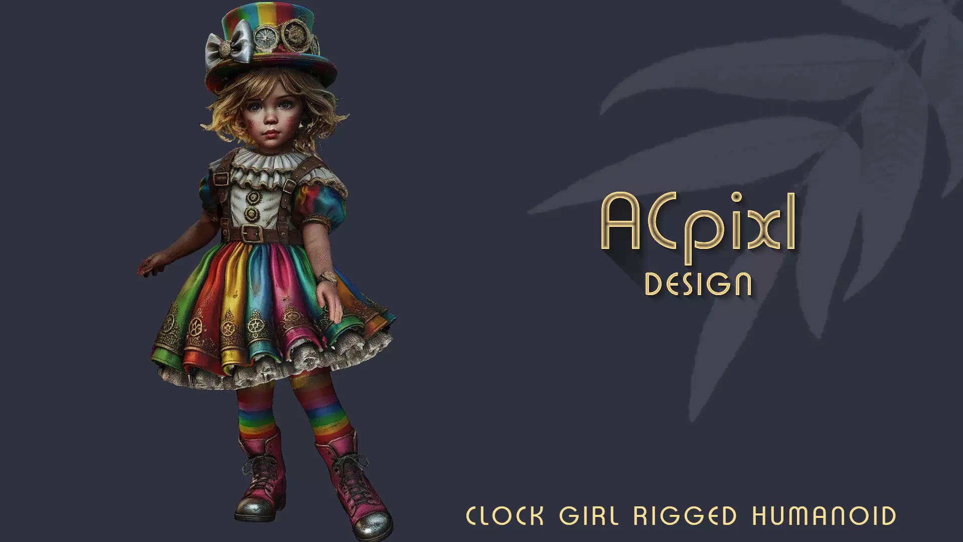 Title: Stylized Steampunk Rainbow Girl - Fully Rigged & Animated