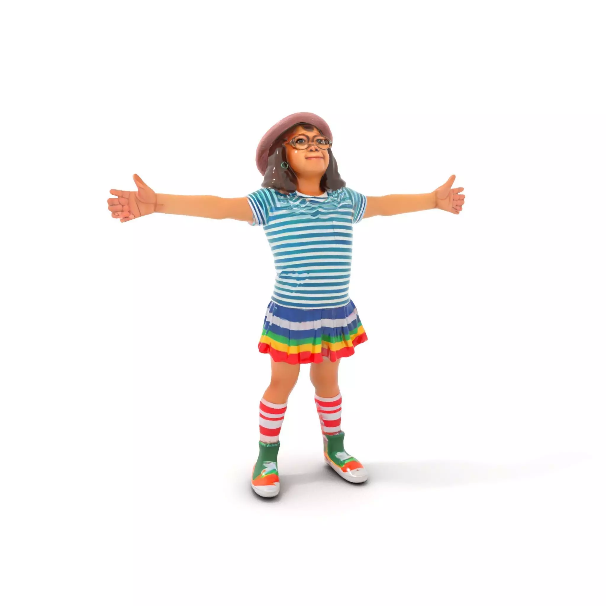 This vibrant and playful child character model pack is perfect for animation, game design, and interactive presentations. Featuring a dynamic pose with outstretched arms, it's ideal for cheerful, fun scenarios. Each model has 3 levels of detail: low-poly (1000 triangles for mobile), middle-poly (10,000 triangles for environment), and high-poly (100,000 triangles), supporting production rendering in software like 3ds Max, Maya, and Blender, as well as game engines such as Unity and Unreal. Textures are PBR, including Diffuse, NormalMap, and reflection/roughness/metallic, ensuring compatibility with modern rendering engines. All models are accurately unwrapped with no overlapping UVs, and textures are 4096x4096 in size. Perfect for educational animations, children's apps, and playful game settings. Please like and leave a comment if you find this model useful. The first image is the reference used for creating the 3D model. It is important to carefully evaluate the quality of the model by examining the preview images that display the topology and polygonal mesh. These previews (WIRE and WEB 3D Preview) clearly demonstrate how accurately the model matches the original reference and how well the geometry has been executed.