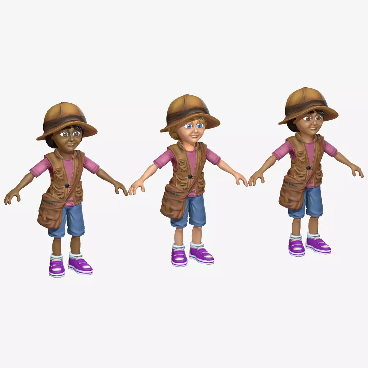 A child (Girl) model dressed for exploring. White, Latina, and Black versions included!