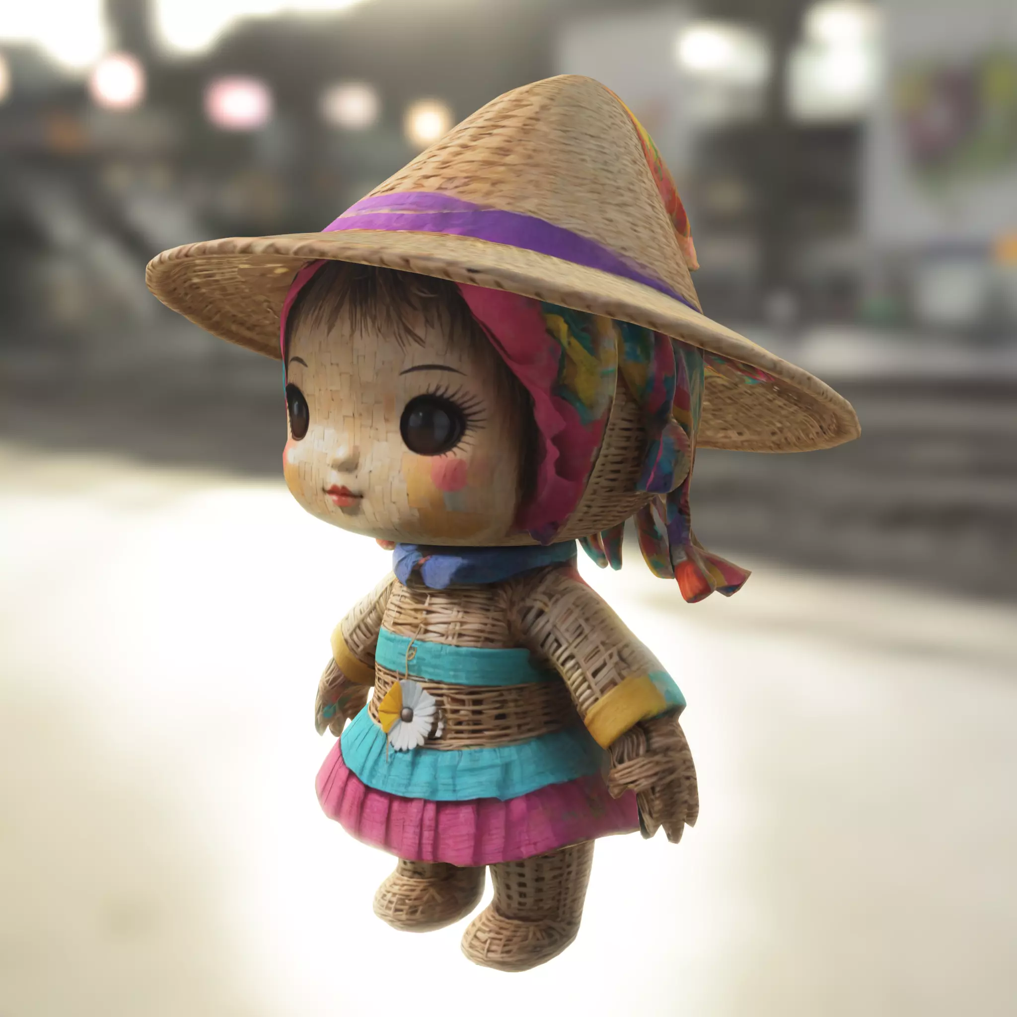 Detailed 3D model of a handmade-style doll with woven texture, colorful clothing, and a traditional straw hat. This charming character is perfect as a decorative prop, NPC, or collectible item in popular games such as The Sims, Animal Crossing, Fortnite, and Minecraft mods. Provided in multiple formats (OBJ, FBX, STL, DAE, PLY, GLB, Blender), it is fully optimized for integration into Unity and Unreal Engine. Additionally, this model is prepared for 3D printing, making it an excellent option for collectors, toy designers, or cultural decorative items.