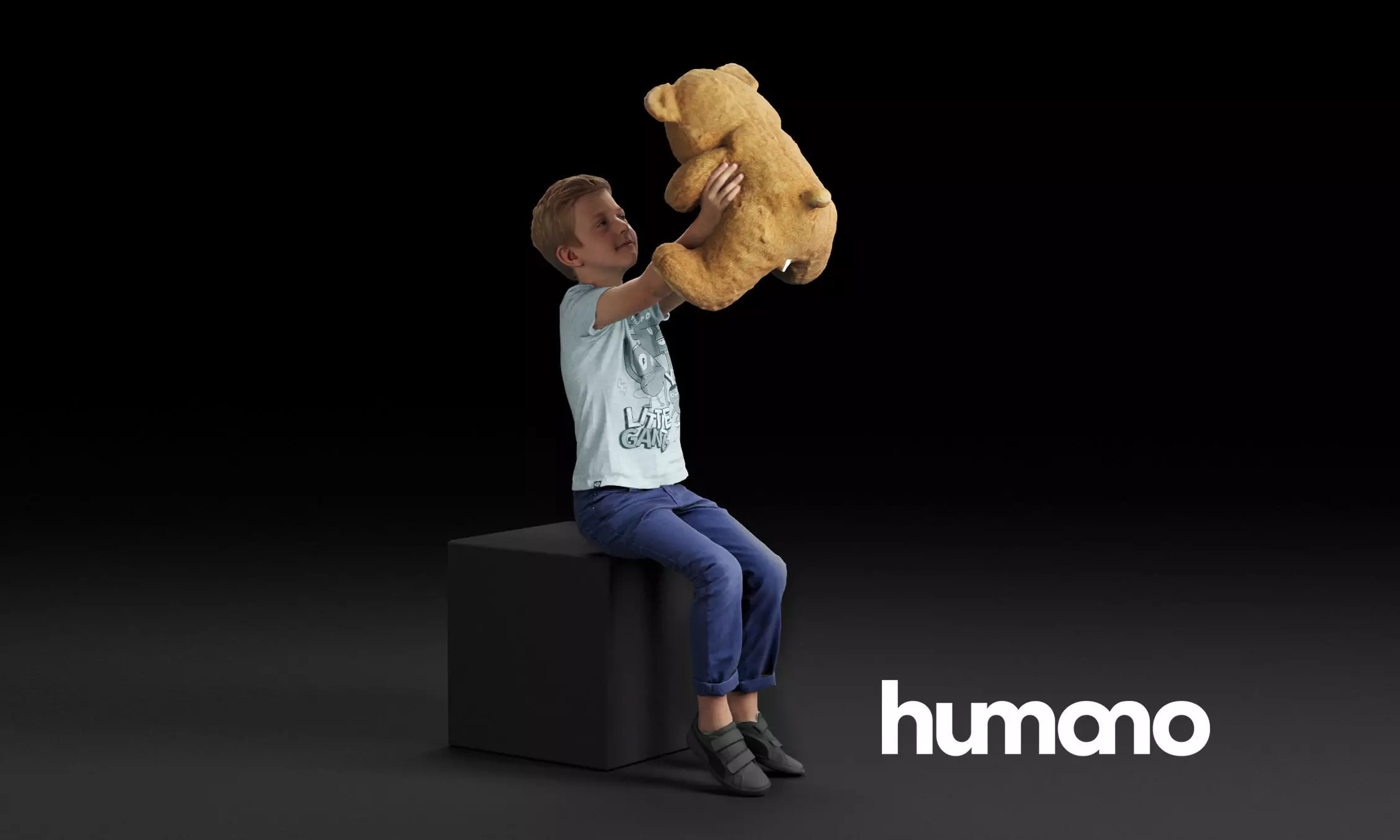 Humano Sitting boy holding a taddy bear 0506 3D model