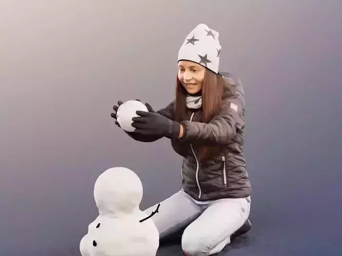 Layla 12419 - Kneeing Girl Building Snowman Low-poly 3D model