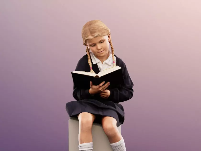 Luciana 12511 - Sitting School Girl Reading Book Low-poly 3D model