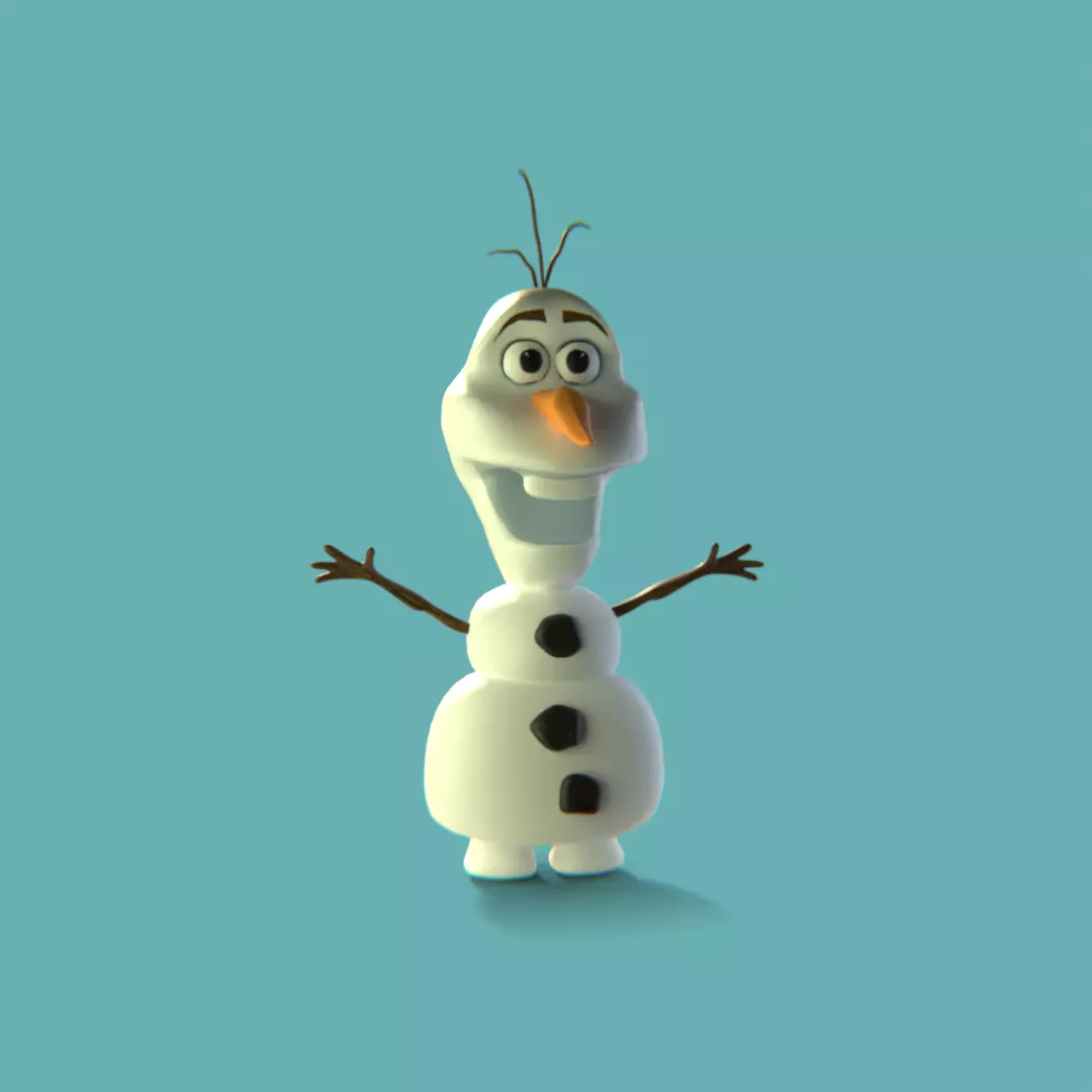 Olaf snowman from Frozen 3D model, made and polypainted on Blender 2.82 unwrapped uvs non overlappingusable for game or 3d printing you also have a turnaround in mp4 and rendered preview
