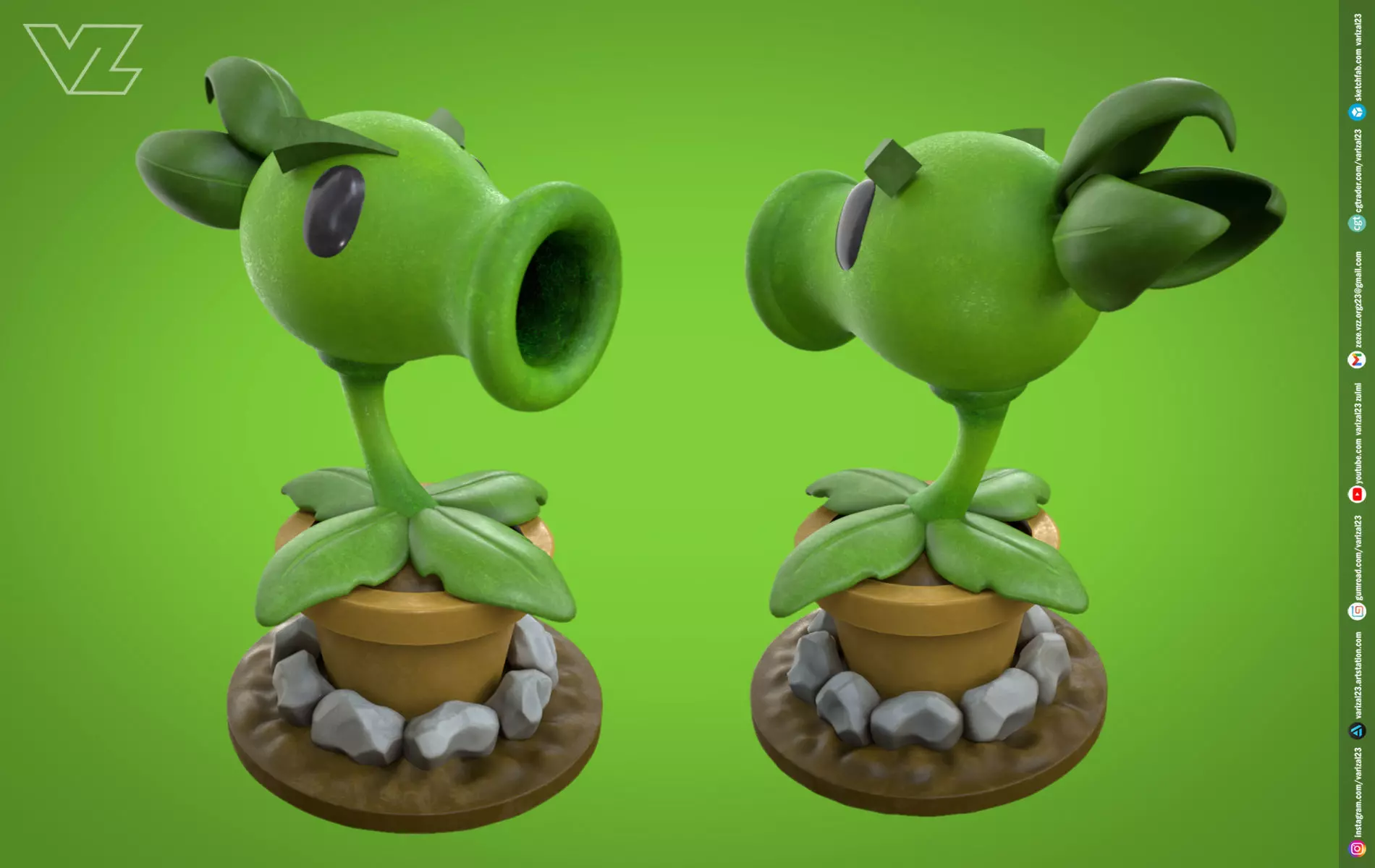 Plants vs Zombies - Repeater - 7 File Types - PBR Material Low-poly 3D model