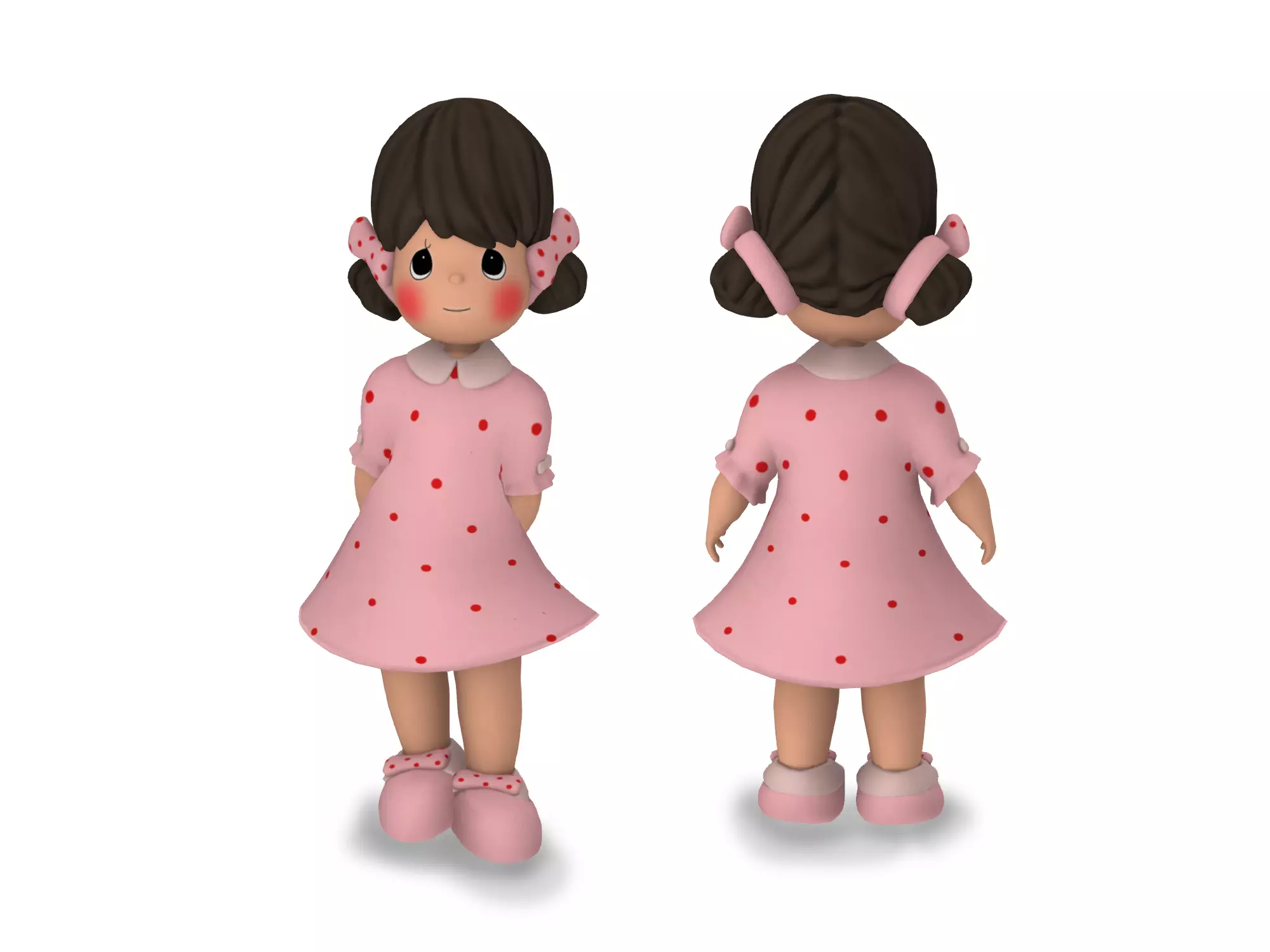 Rigged Stylized Little Cartoon Girl Character Low-poly 3D model
