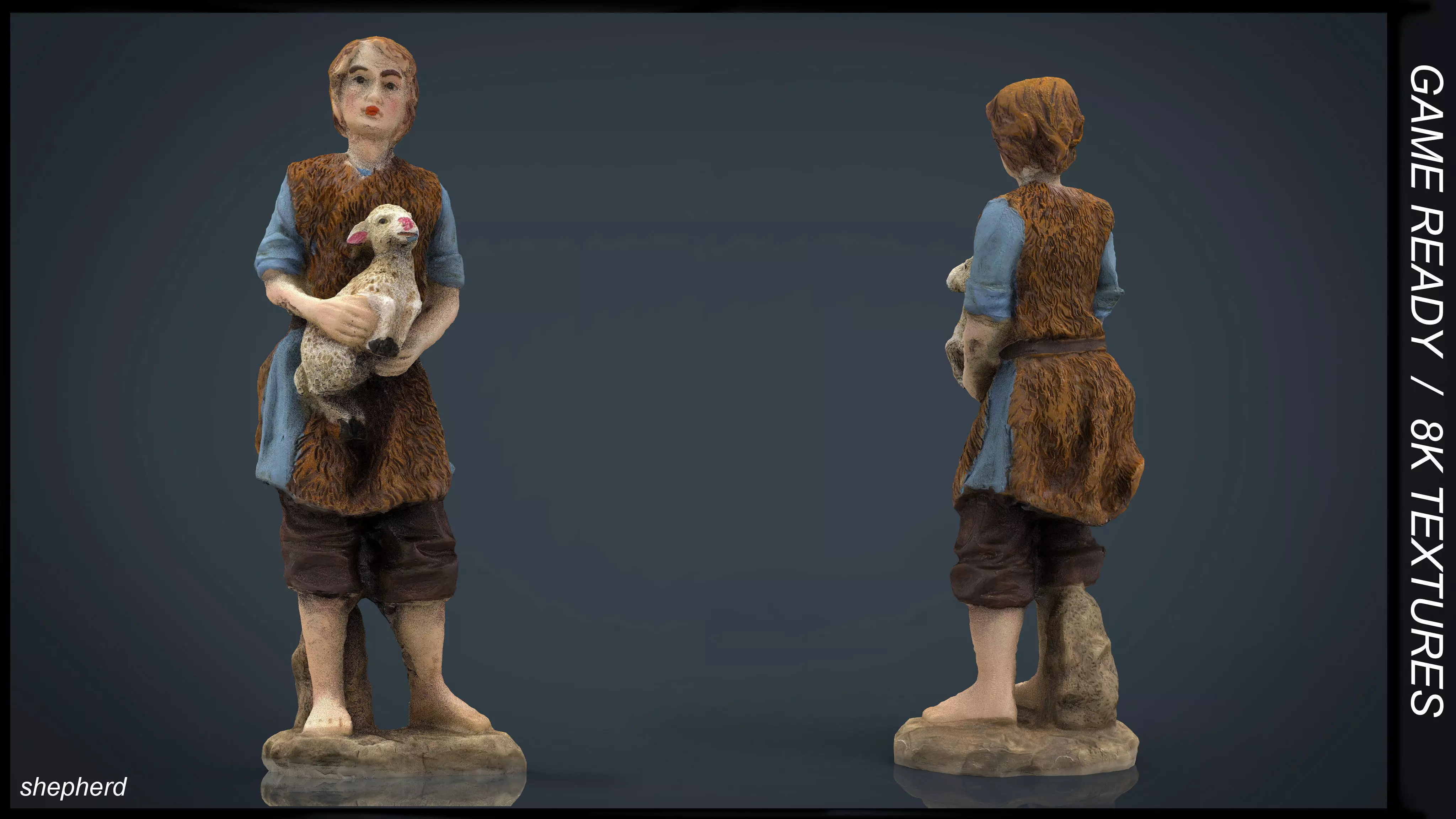 Shepherd statue of woman holding sheep Low-poly 3D model