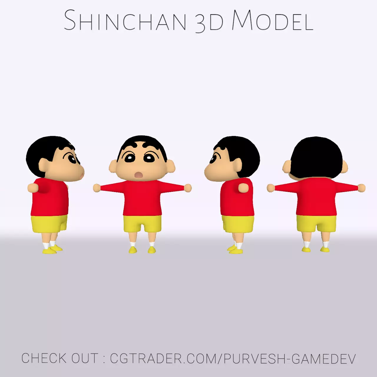 Shinchan Nohara 3d model for animation , game and 3d printing japanese cartoon character