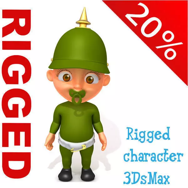 Soldier baby Cartoon Rigged is a high quality, photo real model that will enhance detail and realism to any of your rendering projects. The model has a fully textured, detailed design that allows for close-up renders, and was originally modeled in 3ds Max 2013 and rendered with Mental ray and Mental Ray.This is a fully rigged biped for 3DSMax. It has been tested by several animators. It is a very fast rig .Scene objects are organized by layers.No third-party renderer or plug-ins needed