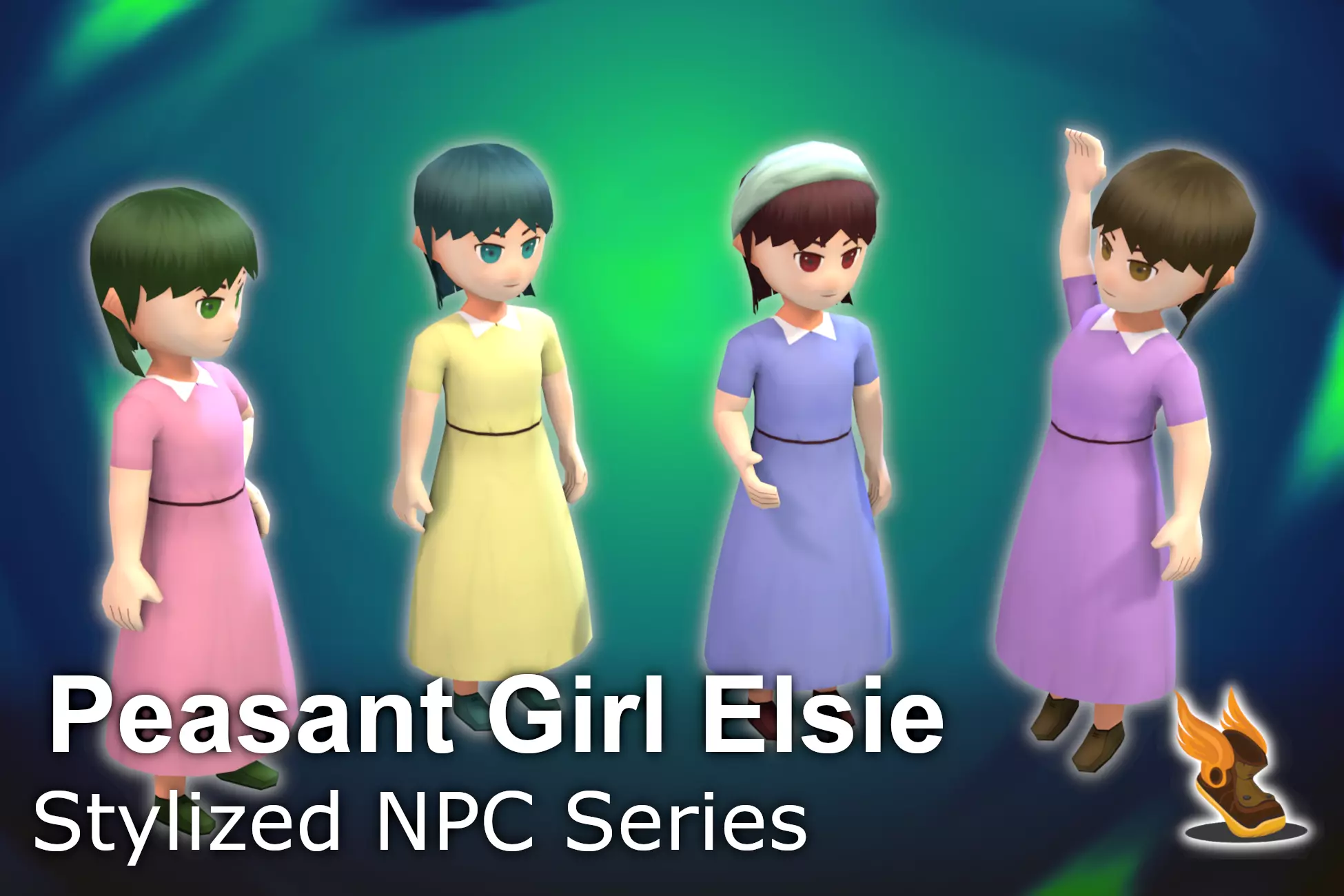 Stylized NPC - Peasant Girl Elsie Low-poly 3D model